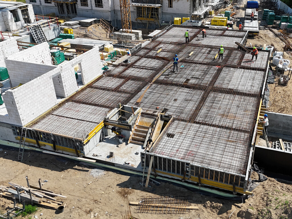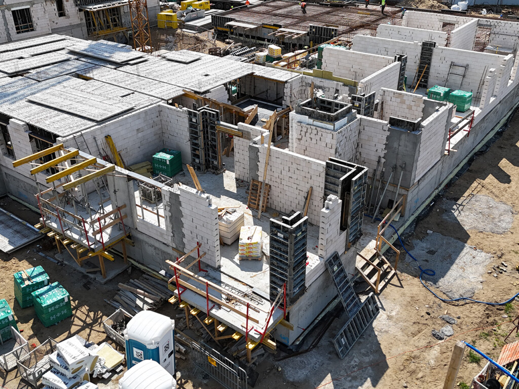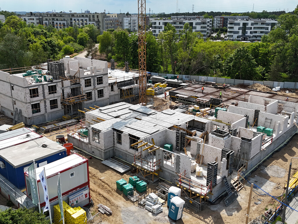 Stabilne fundamenty i precyzyjna organizacja robót pozwalają nam realizować harmonogram zgodnie z założeniami. Każdy dzień to kolejny krok w stronę gotowego osiedla, do którego nowi mieszkańcy będą mogli wprowadzić się zgodnie z planem.