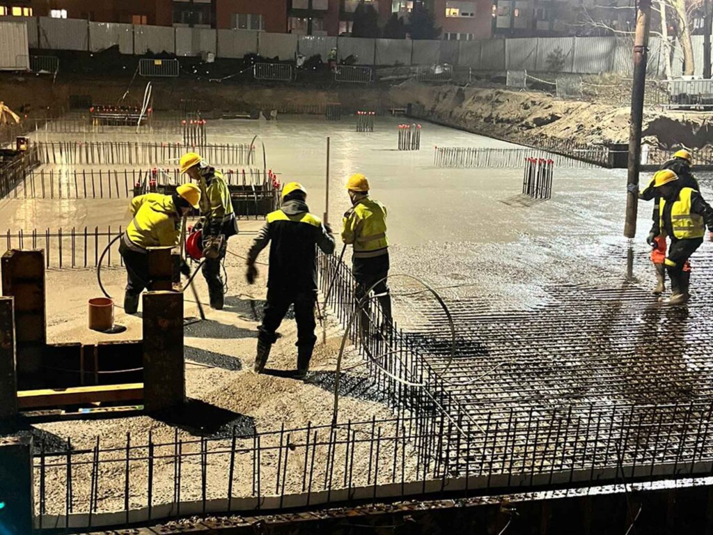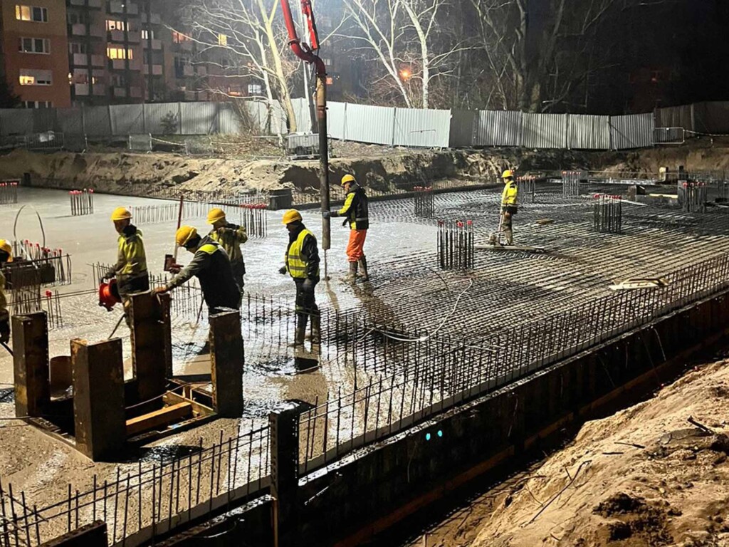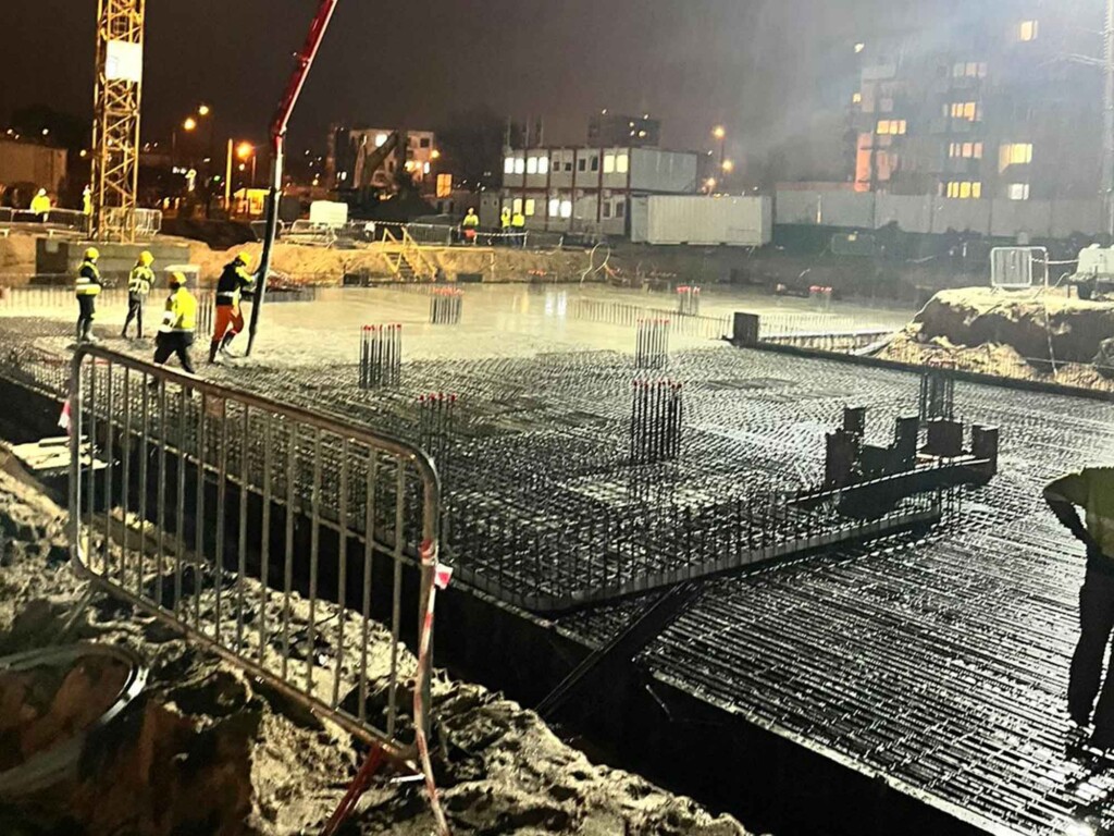 Na budowie Laurowego Zakątka intensywne prace trwają bez przerwy, zarówno w dzień, jak i już po zmroku. Do tej pory wylaliśmy około 60 gruszek betonu, co stanowi około 400 m³. To ogromny krok w stronę realizacji inwestycji!