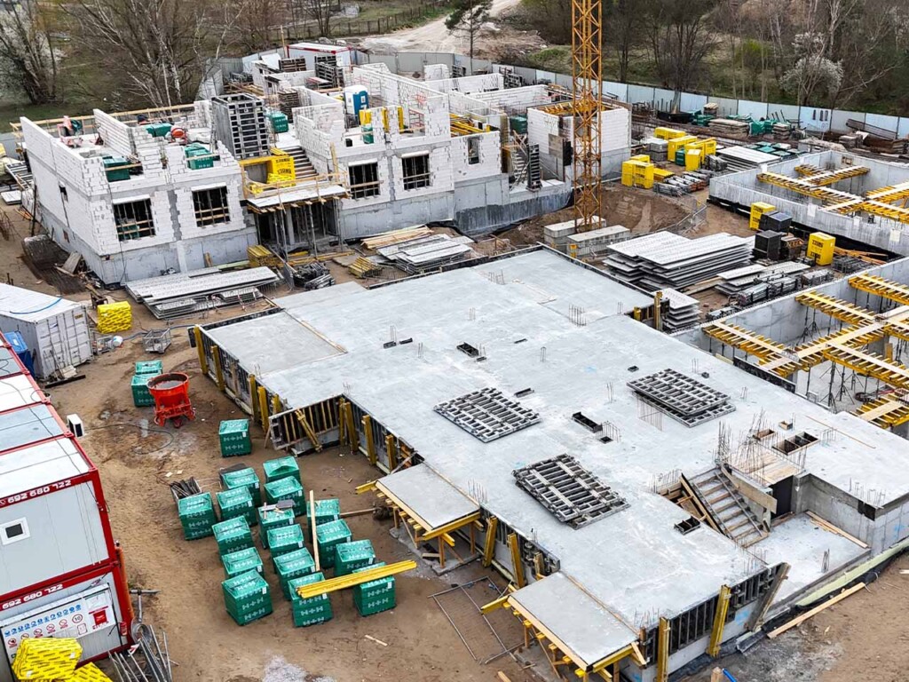 Na budynku A wykonywany jest obecnie strop nad garażem podziemnym, co przybliża nas do rozpoczęcia prac na poziomie parteru.